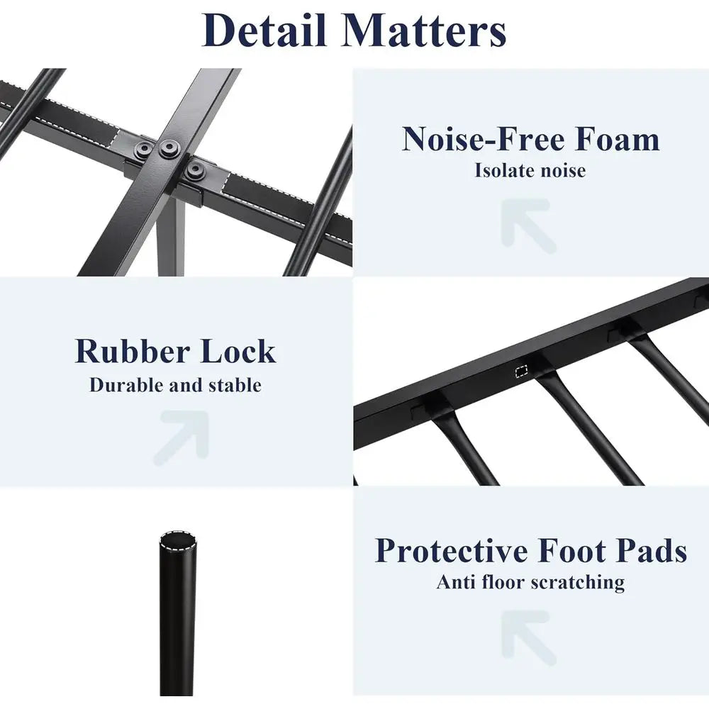 14 Inch Queen Metal Bed Frame with Vintage Headboard, Footboard, Underbed Storage, No Box Spring Needed, Easy Assembly, Black