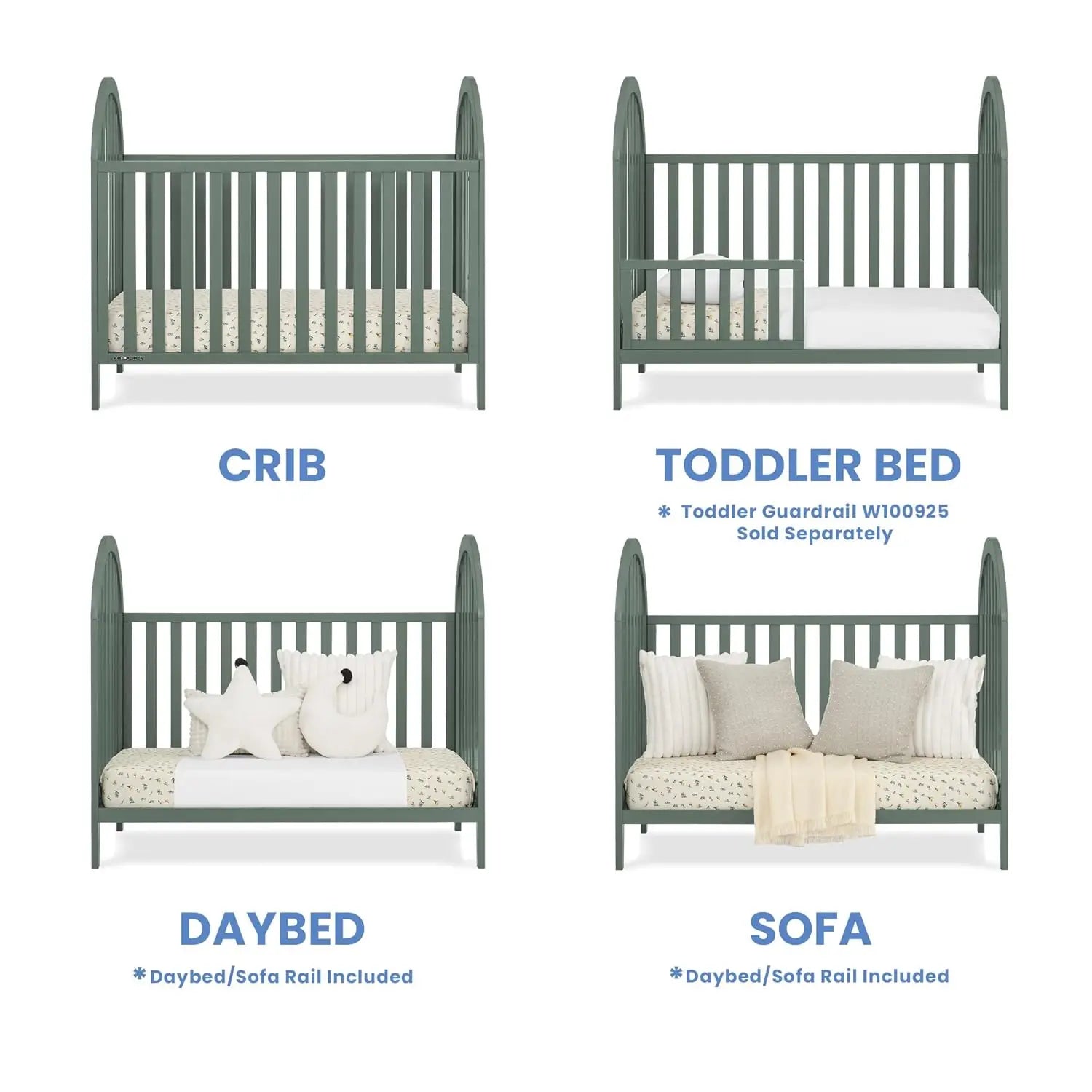 4-in-1 Convertible Crib with Greenguard Gold Certification, Adjustable Height for Baby Safety and Growth