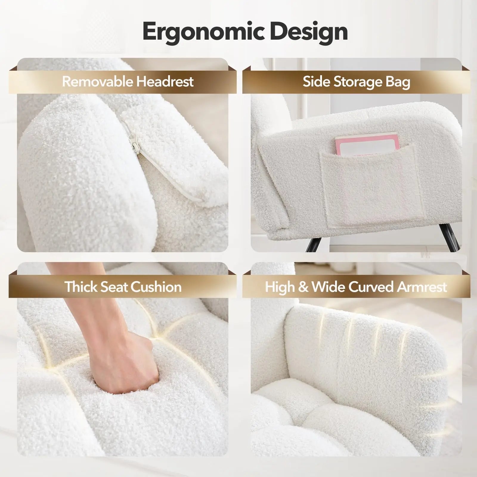 Nursery Rocking Chair Teddy Upholstered Glider Rocker Rocking Accent Chair Padded Seat with High Backrest Armchair Comfy SideCha